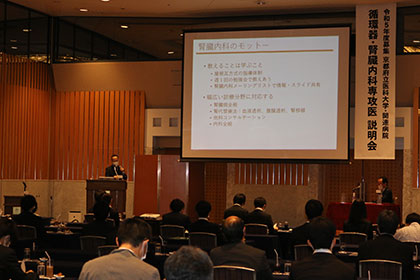 的場先生玉垣先生から循環器内科、腎臓内科の大学の状況や関連病院の状況を説明いただいたのち、 各関連病院から部長の先生がお越しになりそれぞれの病院の特色についてご案内いただきました。
