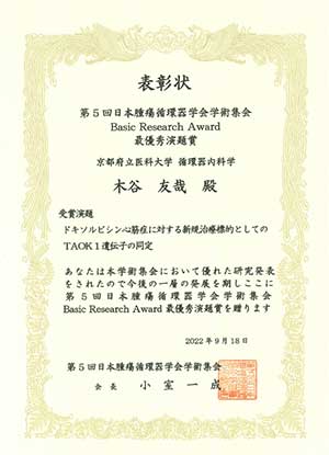 木谷友哉 助教がBasic Research Award最優秀演題賞を受賞しました。