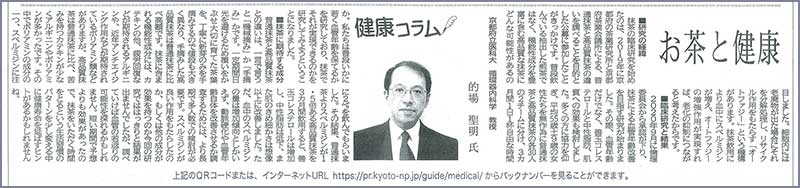 京都新聞朝刊に 健康コラム「お茶と健康」の記事が掲載されました。