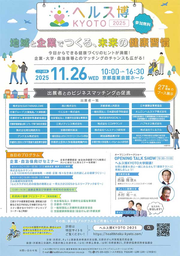 2025年 11月26日(水)京都産業会館にて,ヘルス博KYOTO2025が開催されます。